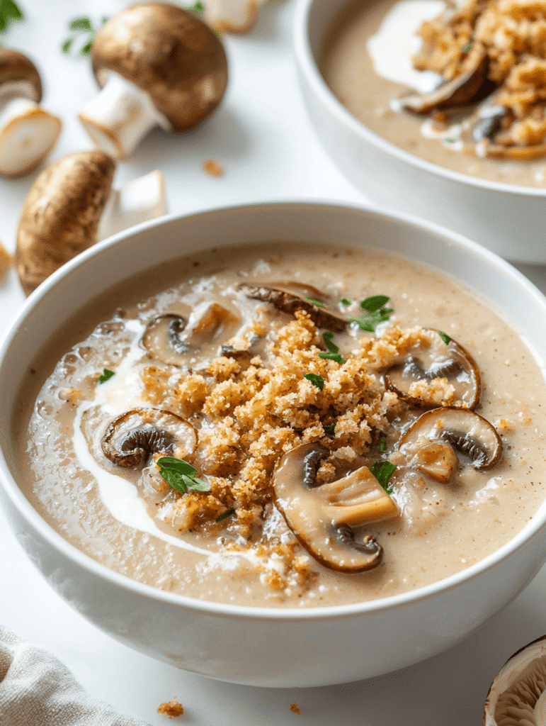 Creamy Mushroom and Onion Soup with Toasted Breadcrumbs