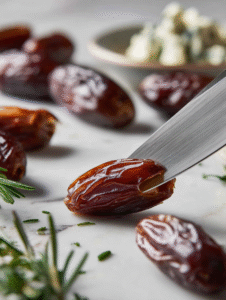 Step 3: Stuff each date with a small piece of cheese—blue cheese or goat cheese work beautifully—if you like a tangy surprise.