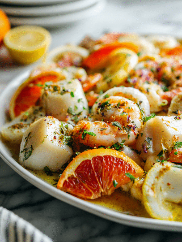 This recipe came from a desire to do something unexpected for Christmas—something that feels both festive and comforting. I love how citrus brightens up the richness of seafood, making it feel fresh and lively on a winter table. It’s a little chaotic to prepare, but that’s part of the charm—loud flavors and warm aromas filling the kitchen.