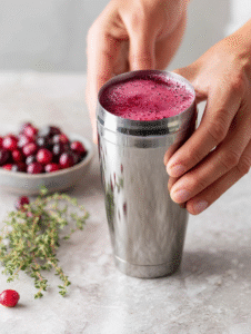 - Add a handful of fresh cranberries into the shaker for extra flavor and a festive look.