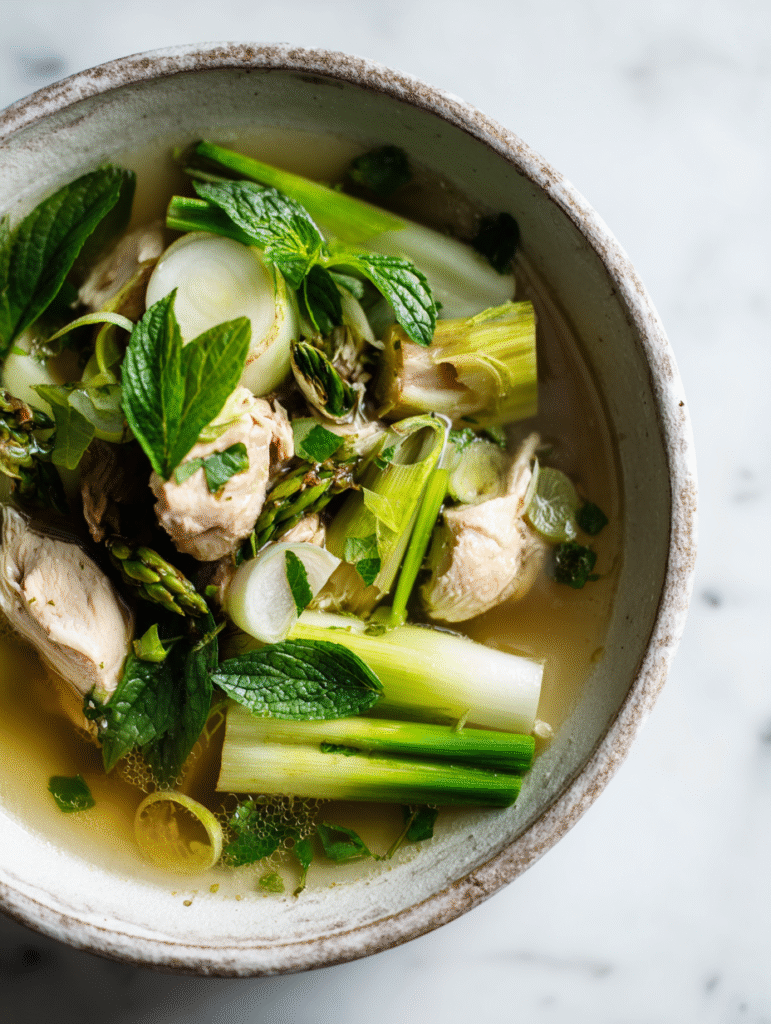 - Lemongrass infuses the broth without overpowering the chicken.