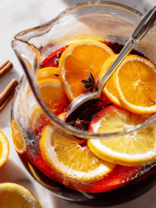 Step 3: Add sliced citrus fruits, a cinnamon stick, and a few whole cloves. Let it sit for 30 minutes to meld flavors.