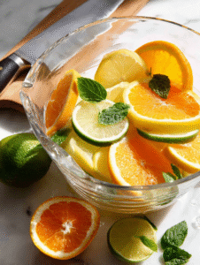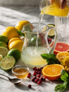 - Citrus juice (lemon, lime, orange): Brightens the drink with a tart, zesty punch. Use fresh for the best aroma.