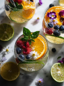 - Garnish each glass with additional fruit slices, berries, and edible flowers or herbs for a beautiful, festive presentation.