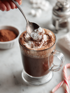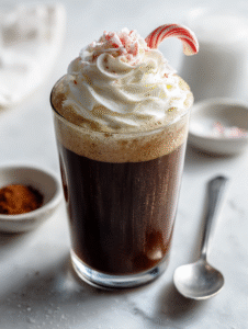 Step 4: Top with a dollop of whipped cream, a sprinkle of cocoa powder, and a tiny candy cane for that festive touch. Serve immediately, while the peppermint scent is fresh.