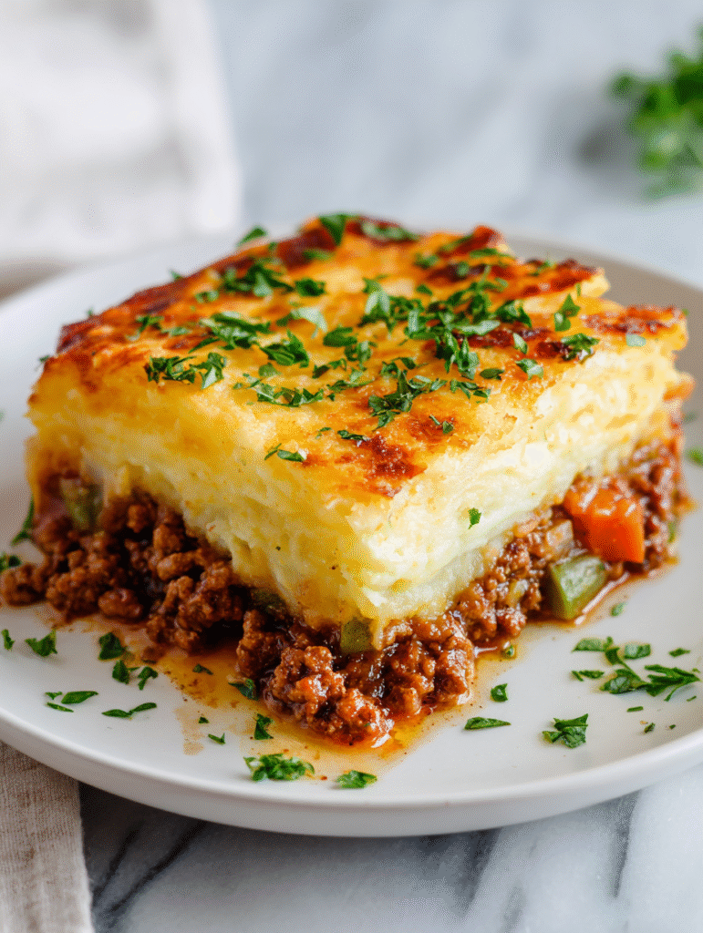 - Topping: Mashed potatoes can be swapped for cauliflower mash or sweet potato for a lighter or slightly sweeter crust.