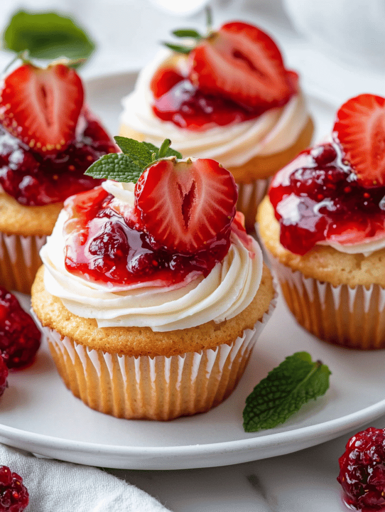 Strawberry Vanilla Cupcakes with Berry Compote