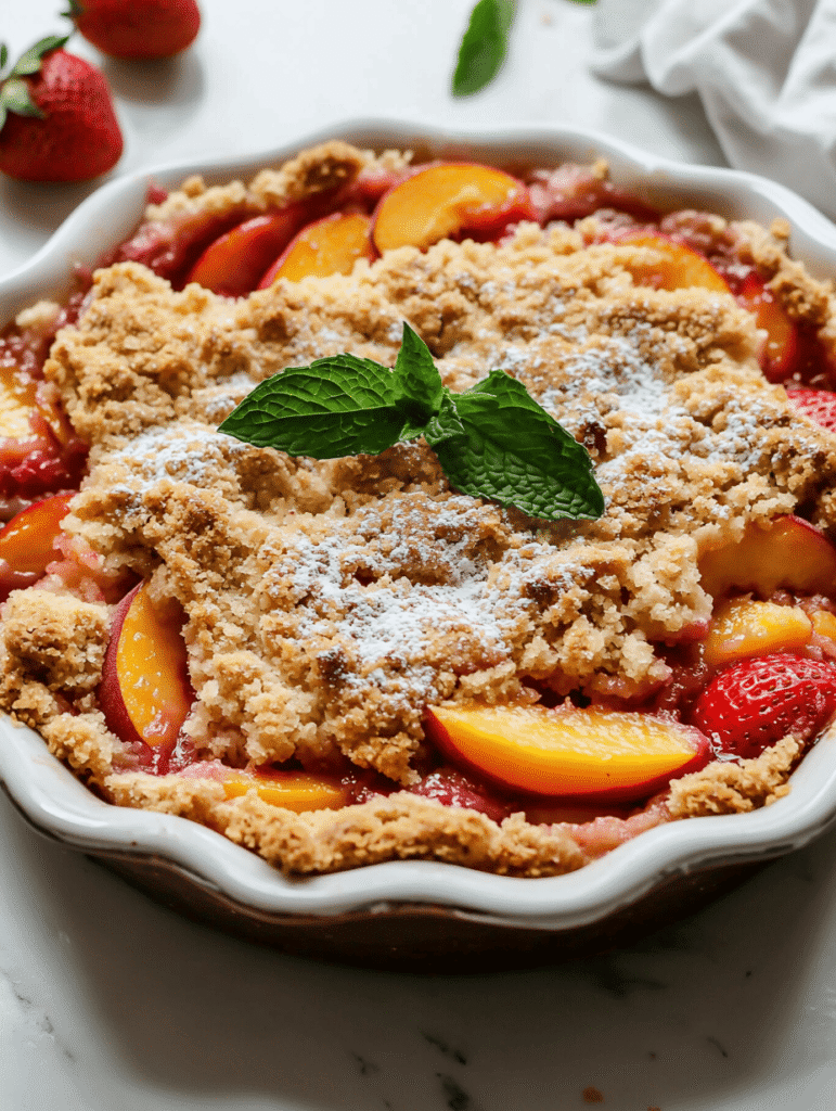 What makes this recipe unique is the way it amplifies the natural juiciness of the fruits with just a hint of vanilla and a crispy, buttery topping. It’s a nostalgic reminder of childhood summer days, but elevated enough to serve at your next dinner party. Plus, it’s surprisingly simple, making it a dependable go-to when peaches and strawberries hit their peak.