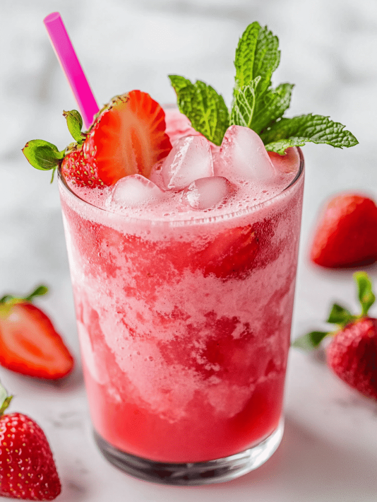 - Optionally, garnish with a fresh strawberry or a small sprig of mint for color and aroma.