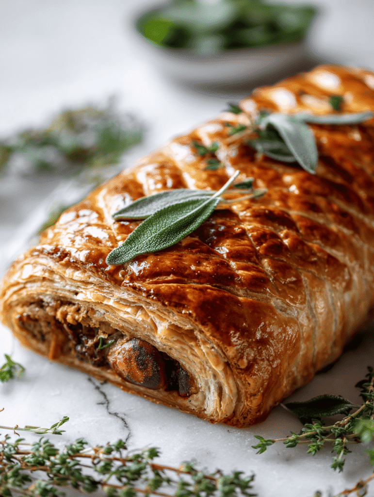 - Garlic and thyme: Layered into the mushroom duxelles, they bring warmth and a hint of earthiness.